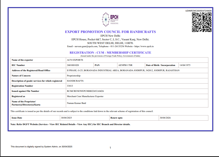 Founded in 2005, ACNExports was born from a desire to let our heritage travel beyond borders. We are more than a manufacturer; we are a bridge — between artisans and admirers, between India’s legacy and modern living.